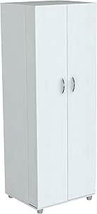 Contemporary storage cabinet is made from solid composite wood. Galley Kitchen Storage Cabinet by Inval finished in a rich White laminates in durable melamine which is stain heat and scratch resistant. Laminated on all sides.